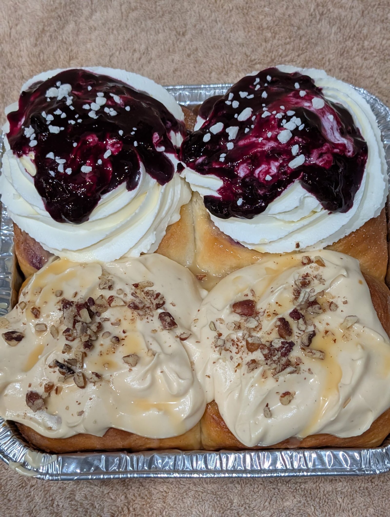 We are a mobile bakery and coffee bar. Locations will vary and will be posted on our site each week. Our products include Cinnamon Rolls, Baked goods, Coffee and Ronica’s Sweet Buns apparel.