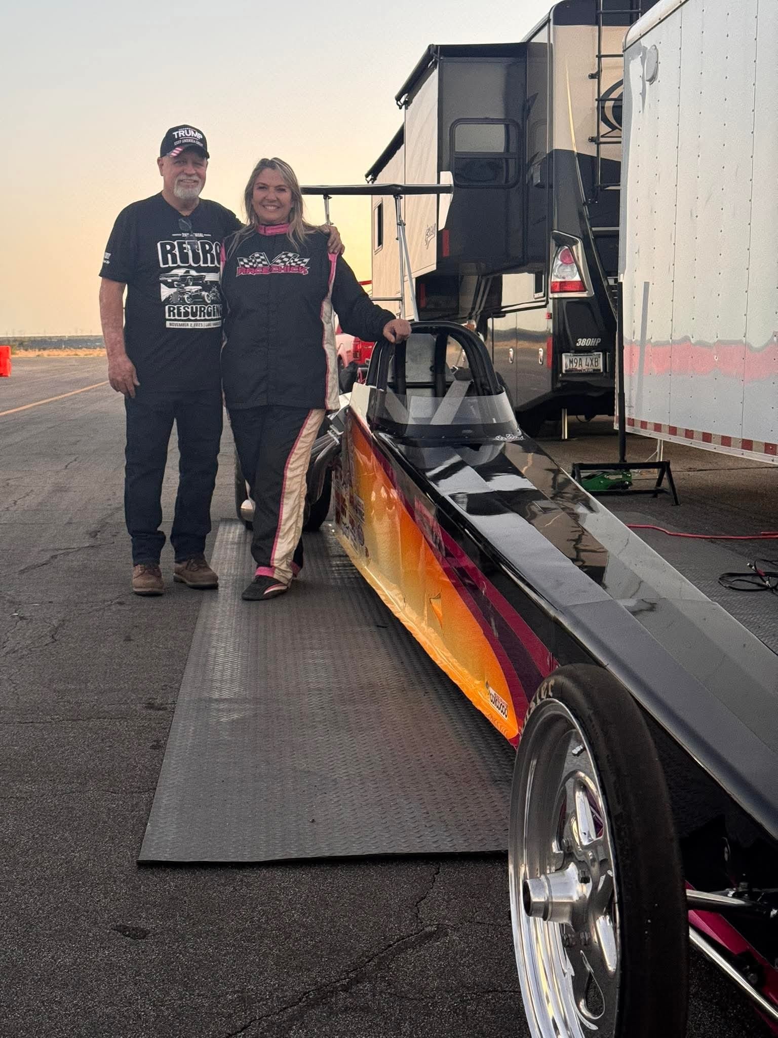Monica met the love of her life, Ron Mongenel, who “lit” the flame for this chapter and caliber of racing. Together they have built a team. Around town Ron & Monica are known as “RONICA”. Their hobbies always include some form of speed, fuel, and winning. In their down time they enjoy entertaining and feeding their friends and family.